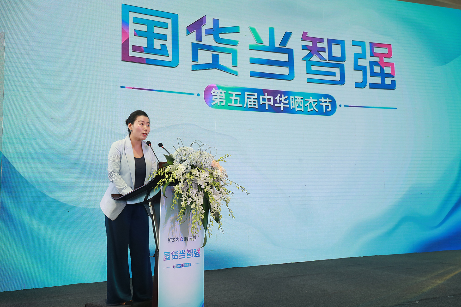 廣東好太太集團(tuán)總裁王妙玉女士也登臺(tái)為第五屆中華曬衣節(jié)致辭。表明了好太太集團(tuán)倡導(dǎo)文化自信,以智能家、趣生活為核心使命以強(qiáng)大的科技賦能創(chuàng)新晾曬新革命,為人們提供了輕松、快樂(lè)的生活方式。