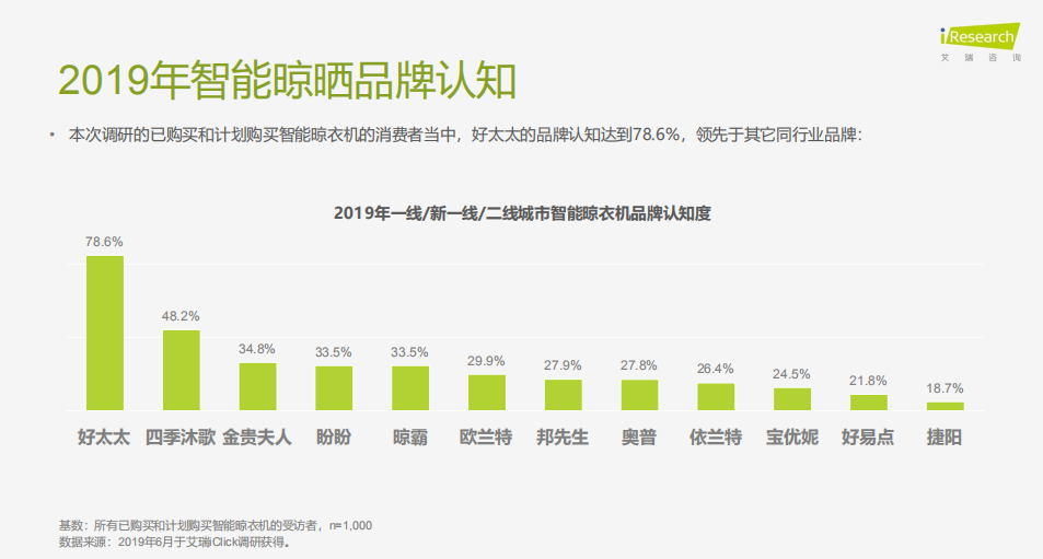 經(jīng)過(guò)深入調(diào)研后,艾瑞在曬衣節(jié)當(dāng)天發(fā)布《國(guó)貨當(dāng)智強(qiáng)——家居晾曬智能化趨勢(shì)洞察報(bào)告》,報(bào)告顯示,消費(fèi)者普遍認(rèn)同的國(guó)貨家居代表品牌有好太太、水星家紡、歐派、富安娜與九牧等。此外,好太太在主流晾衣機(jī)品牌的整體滿意度是最高的,并且在智能功能、材質(zhì)做工或者安裝售后等任何一個(gè)維度上看,好太太都是當(dāng)仁不讓的行業(yè)第一名。