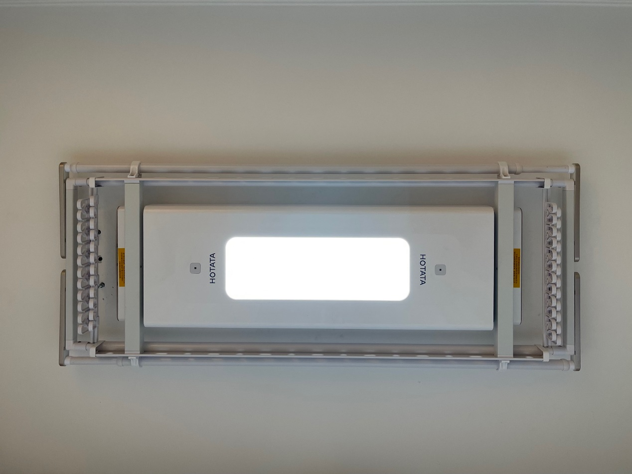 3、更省空間,不用的時候可以完全收縮在陽臺上方,只占用陽臺吊頂空間。