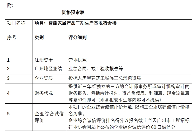 1、招標項目名稱: 智能家產品二期生產基地—宿舍樓。
