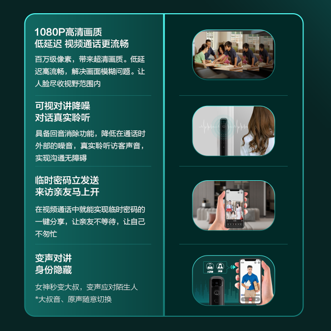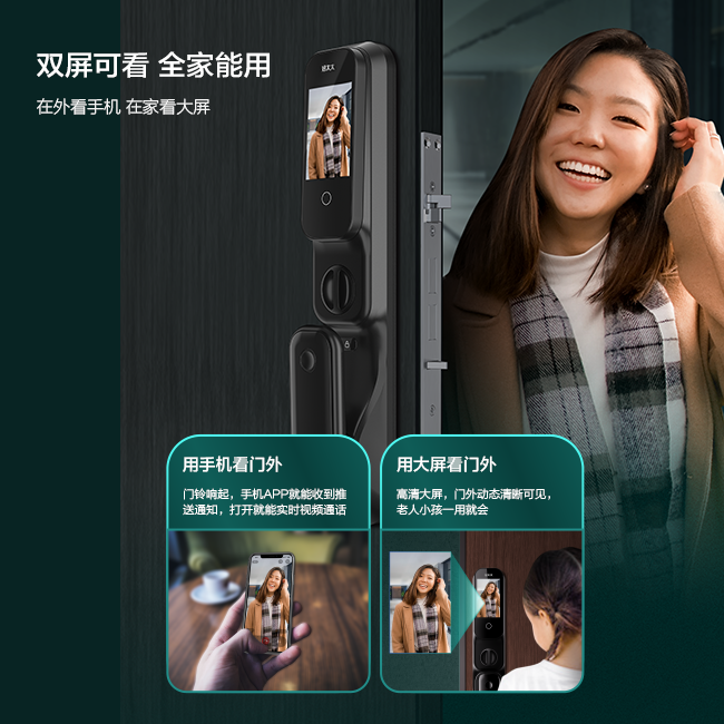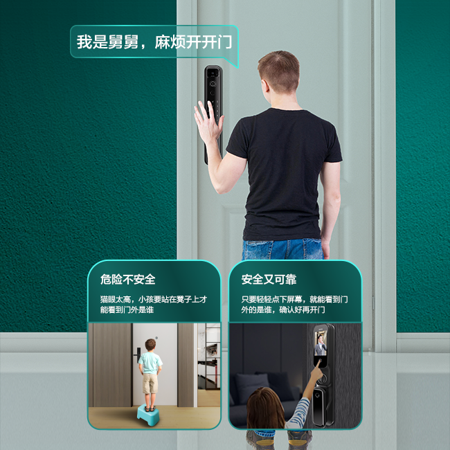 搭載4寸IPS高清室內(nèi)彩屏,高清鋼化玻璃表面貼合,畫(huà)質(zhì)清晰更防刮蹭。平時(shí)也可通過(guò)按鍵主動(dòng)喚醒查看,從此不再擔(dān)心孩子給陌生人開(kāi)門(mén)。